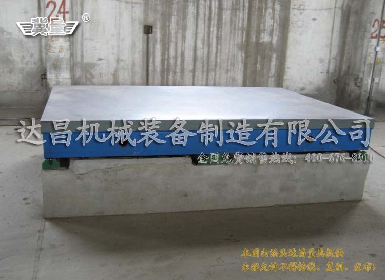 一般鑄鐵平臺(tái)的調(diào)平都是采用方型的調(diào)整墊鐵,根據(jù)平臺(tái)的重量及使用來(lái)確定所需墊鐵的規(guī)格。如一塊2000*4000的鑄鐵平臺(tái),一般至少需要用到六塊墊鐵,墊在鑄鐵平臺(tái)的四角及4米方向兩側(cè)的中間位置,鑄鐵平臺(tái)及工件重量一共為5T的重量時(shí),至少要選用規(guī)格為200*100*60的S83型調(diào)整墊鐵,當(dāng)然大于此規(guī)的墊鐵也是可以的。具體調(diào)平方法為:吊裝平臺(tái),把六塊墊鐵放置好,裝鑄鐵平臺(tái)放置在墊鐵上,調(diào)整墊鐵,使各墊鐵均勻胎受力,用水平測(cè)量?jī)x器(水平尺或電子水平儀)檢測(cè)鑄鐵平臺(tái)水平狀況,調(diào)整墊鐵上面的螺栓,直到符合水平位置。初次調(diào)平后,需靜置12小時(shí),然后再次檢測(cè),如不合格需進(jìn)行再次調(diào)整,合格后方可使用。鑄鐵平臺(tái)需要根據(jù)使用情況定制進(jìn)行維護(hù),一般維護(hù)周期為6-12個(gè)月。