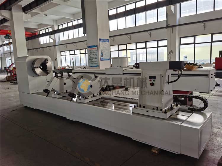 激光熔覆變位機用于長4000mm,重 300Kg,直徑 1000工件旋轉激光熔覆加工。激光熔覆變位機由基礎焊接底座、帶卡盤旋轉主軸箱、可以移動并定位的液壓尾頂、用于工件旋轉支撐的可調托輥,以及相關粉塵防護等組成。