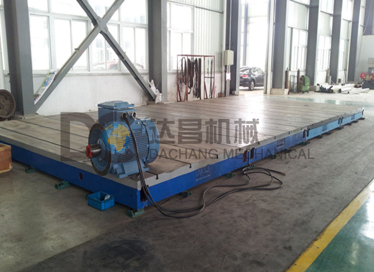 發動機試驗平臺采用灰鑄鐵HT250-300制造,加工成品之前要經過兩次人工退火處理,去除其內應內。根據需方的要求在工作面上加工T型槽、圓孔、長孔等。并預留地腳螺栓孔。