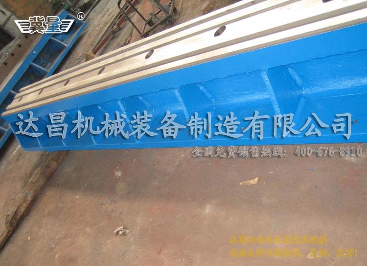 基礎槽鐵材質:高強度鑄鐵HT200-300,工作面硬度為HB170-240,經過兩次人工處理(人工退火600度-700度或自然時效2-3年)使該產品的精度穩定,不易磨損。